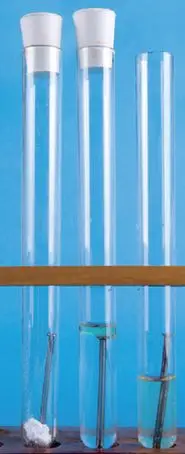 钢铁锈蚀原理是什么?我们可以根据下图所示的小实验进行探究:在第1支试管中加入少量氯化钙(氯化钙可吸收空气中的水蒸气,起干燥作用),放入一根铁钉,塞紧试管口。在第2支试管中放入一根铁钉,加入经煮沸并迅速冷却的蒸馏水浸没铁钉,再注入植物油,使水面上形成油层。在第3支试管中放入一根铁钉,加入少量蒸馏水使铁钉的一部分浸在水中。 连续一周定时对三支试管进行观察并记录现象。我们从实验结果可以发现第1支、第2支试管中的铁钉没有生锈,但第3支试管中的铁钉却生锈了,铁钉表面出现了红棕色的铁锈。由此可见铁生锈需要水、氧气的参与。